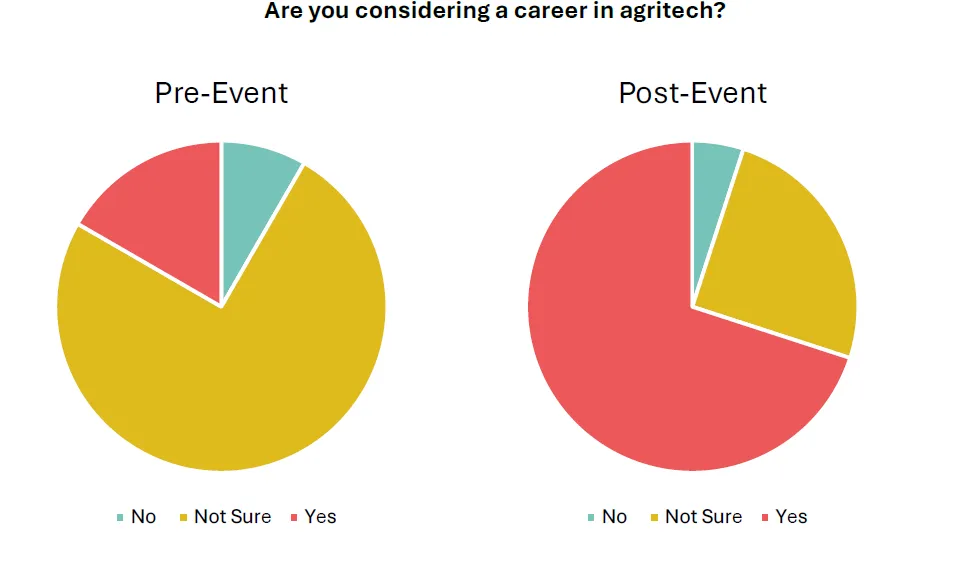 Before attending, only 17% of students said they would consider a career in agritech. By the end of the day, this had risen to 70%.